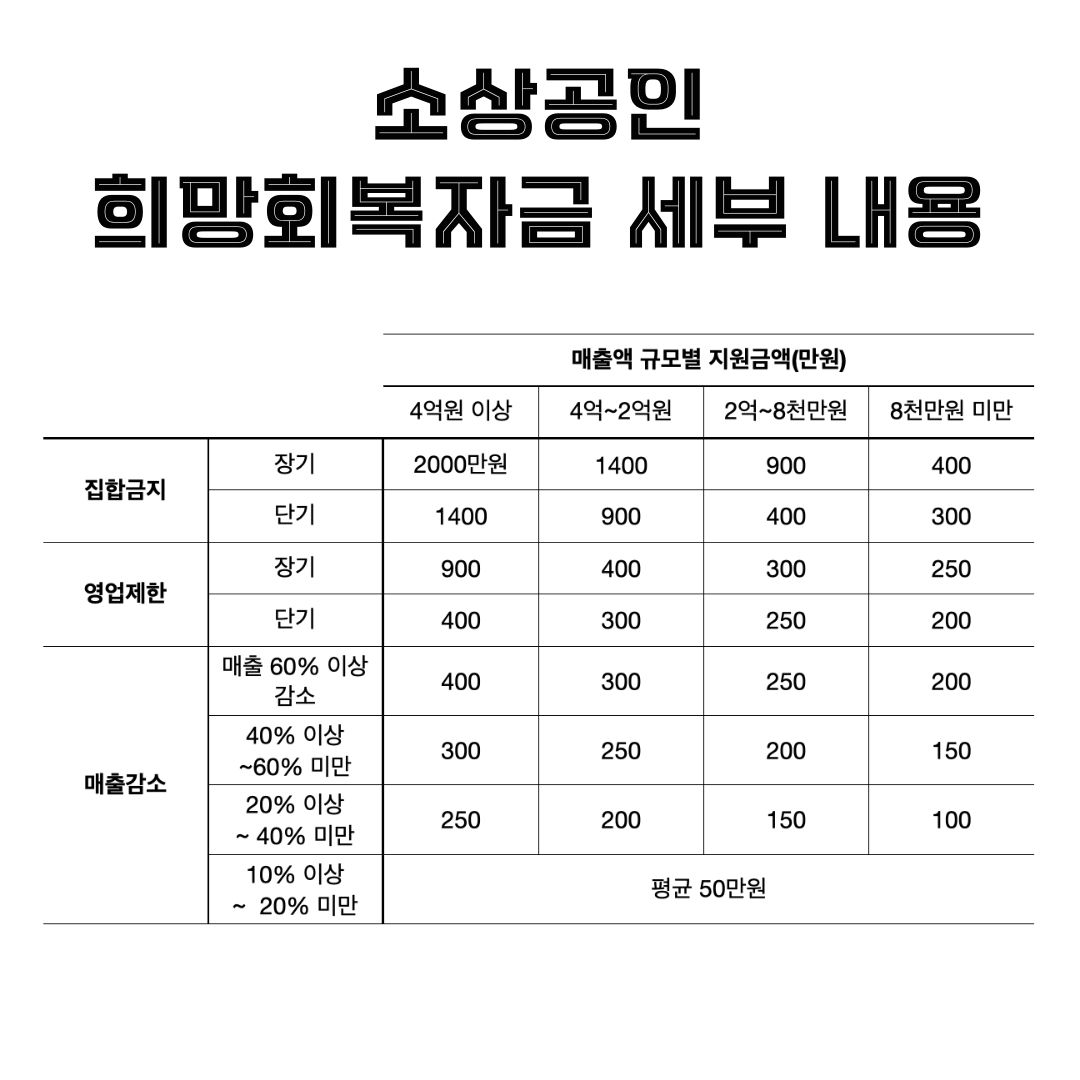 지원금은 100만원~2000만원으로 확대되었으며, 매출 감소폭이 10~20%부터 최대 60% 이상으로 나누어 연 매출 금액에 따라 차등 지급하게 되었습니다.