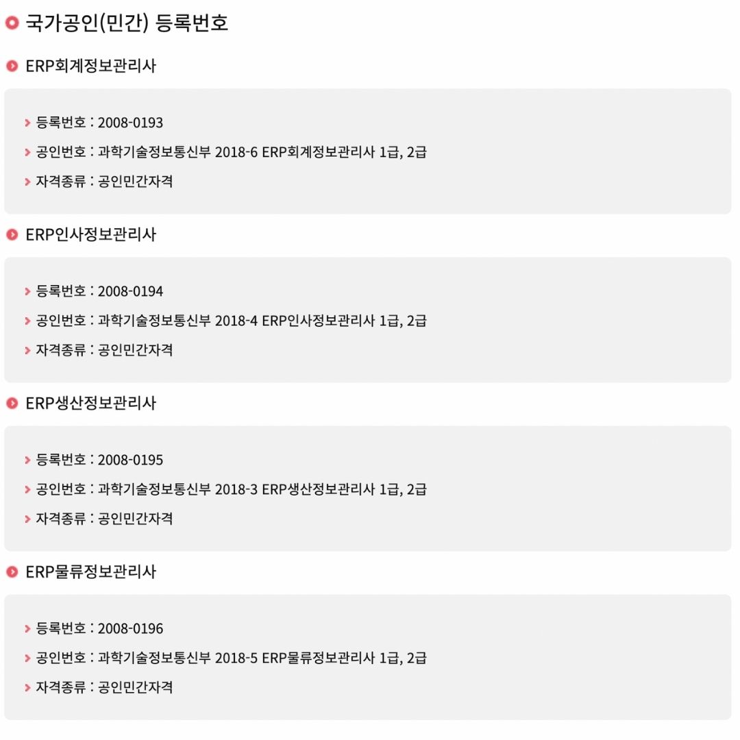중견기업이나 중소기업에서는 ERP 솔루션으로 더존비즈온이나 영림원을 사용하는 기업도 많고, 채용공고 우대사항에도 종종 등장하기도 해서 유용하게 활용할 수 있으며, 또한 채용시 가산점을 부여하는 사기업이나 공기업과 공공기관도 다수 존재합니다.