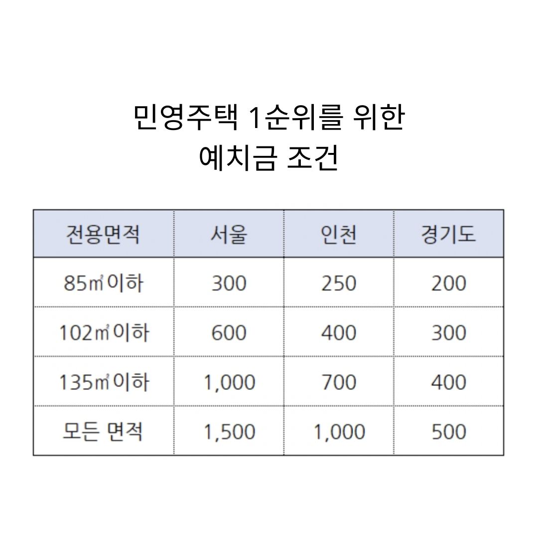 민영주택 1순위를 위한 예치금 조건과 청약 점수 계산법