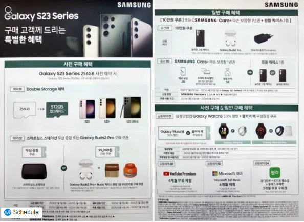 삼성닷컴에서는 S23과 S23 플러스를 위한 라이트 블루와 라이트 그린 색상이 마련되어 있으며, S23 울트라 그레이와 레드 색상을 판매할 예정입니다.